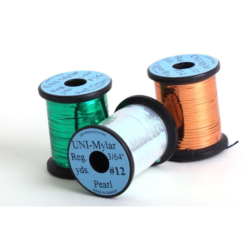 Tinsel plano plástico de dos colores, un color por cada lado, excepto el perla. Utilizado para el montaje de cuerpos de ninfas o dar brillo a los sacos alares.