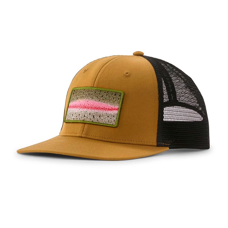 Gorra Patagonia con rejilla trasera para ventilación.Realizada con algodón orgánico y una parte posterior de malla de poliéster reciclado y un cierre ajustable a presión.Cosido con Fair Trade Certified™.