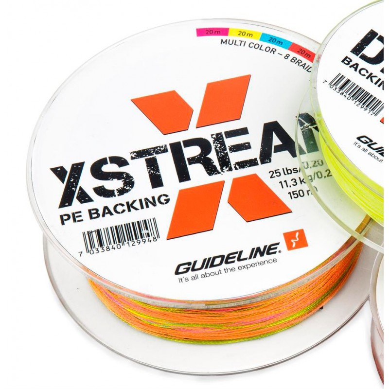 Novedoso Backing multicolor realizado en Polietileno Xstream PE de la marca Guideline de resistencia 40lbs extremadamente fuerte y suave.