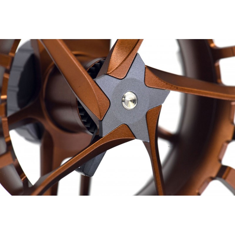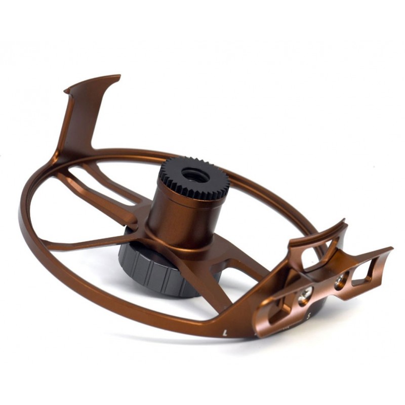 El chasis se basa en el sistema cónico que se encuentra en nuestros otros carretes con la adición de una perilla de freno de parada de clic y un conjunto de resortes único que crea una progresión lineal del freno con una resolución muy fina en el extremo ligero de su rango.