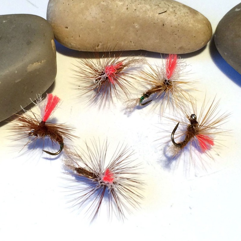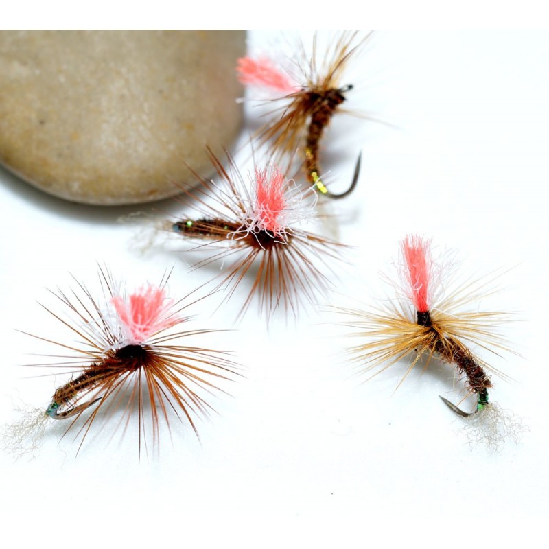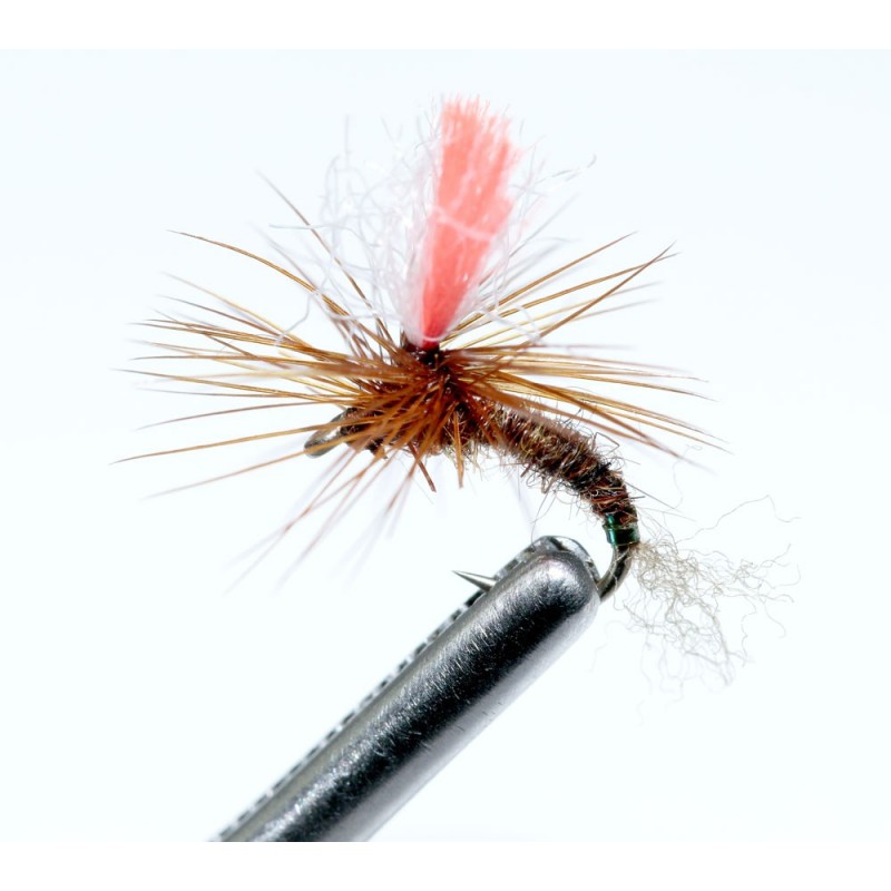 Mosca atractora por excelencia, imprescindible en nuestra caja de moscas, sus mejores resultados nos los ofrecerá en chorros y corrientes - Anzuelo: FC10 en 12- Cercos: Faisán dorado- Butt Herl de pavo real- Cuerpo seda floss de color rojo- Poste Parapost color humo y Glo Britte N5- Hackle pluma de colgadera de color marrón- Tórax herl de pavo real