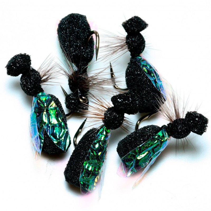 Sin duda una de las moscas mas importantes para la pesca del barbo. Cuando con las primeras lluvias del final del verano los hormigueros revientan y estos insectos por miles alzan el vuelo cayendo exaustas por todas partes, momento que estos ciprinidos aprovechan para alimentarse de forma masiva y confiada. Cuerpo: Foam Alas: Para post Torax: Saddle...