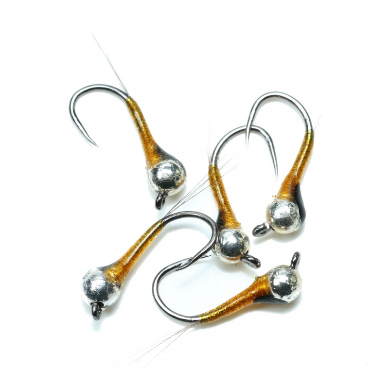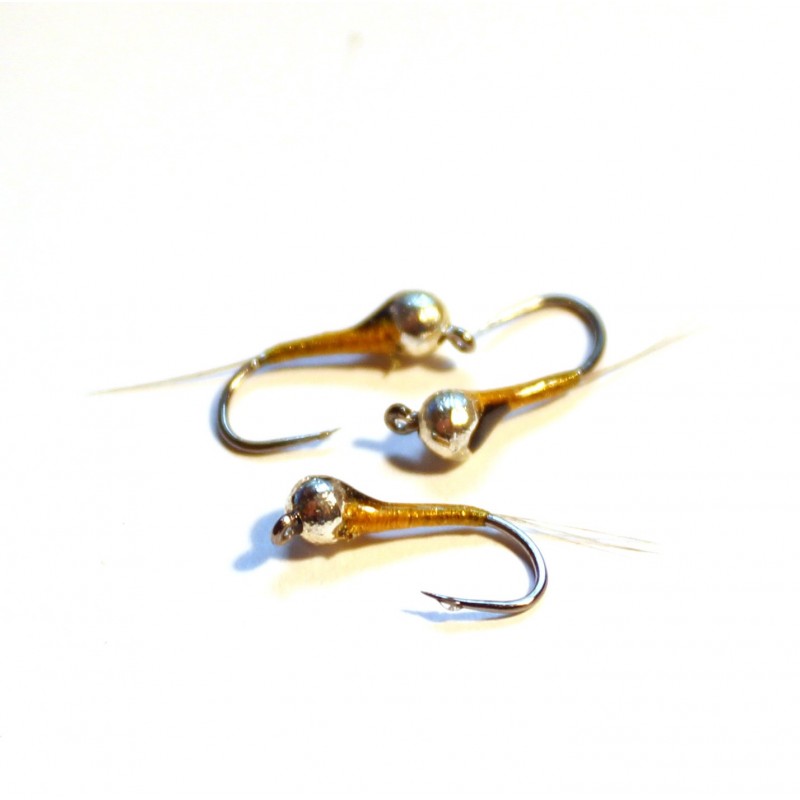 Ninfa muy efectiva en cualquier escenario sobre todo los mas pescados por su color natural, montada en tres tamaños con bola de plata.