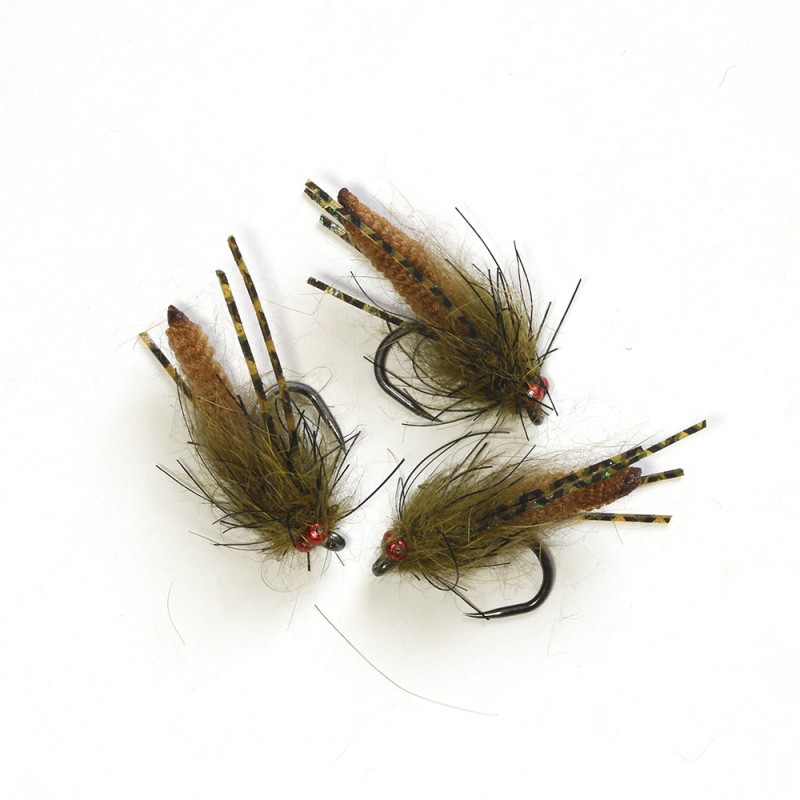 La imitacion de gammarus es una de las mejores opciones para pescar cerca de la vegetacion del río, su aspecto natural la hace muy efectiva. Van ligeramente plomados.