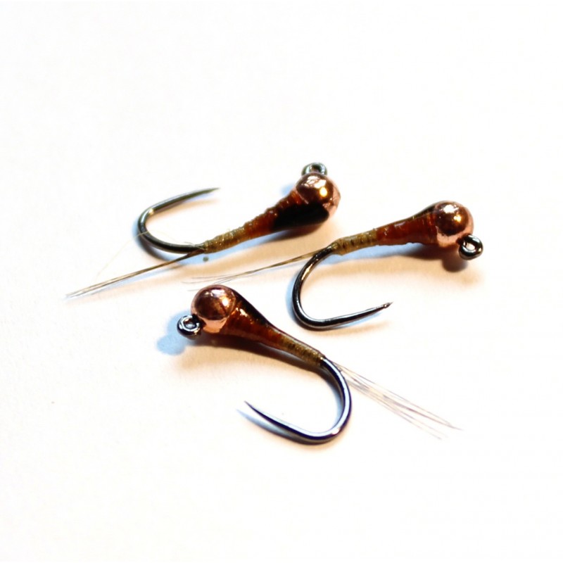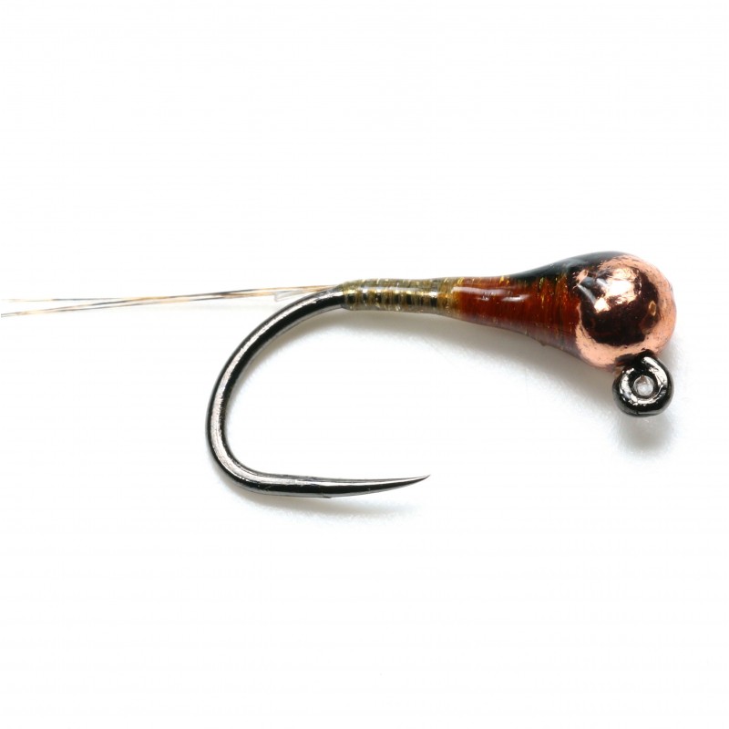 Ninfa imprescindible en tu caja de moscas, efectiva en cualquier escanario por su color y bola, montada en 2 tamaños.Efectividad contrastada!!! Cabeza: Cobre Anzuelo: Fc11BL Nº 14 y 12Bufanda: Holo Cobre.Culo: No.Cuerpo: Cooper