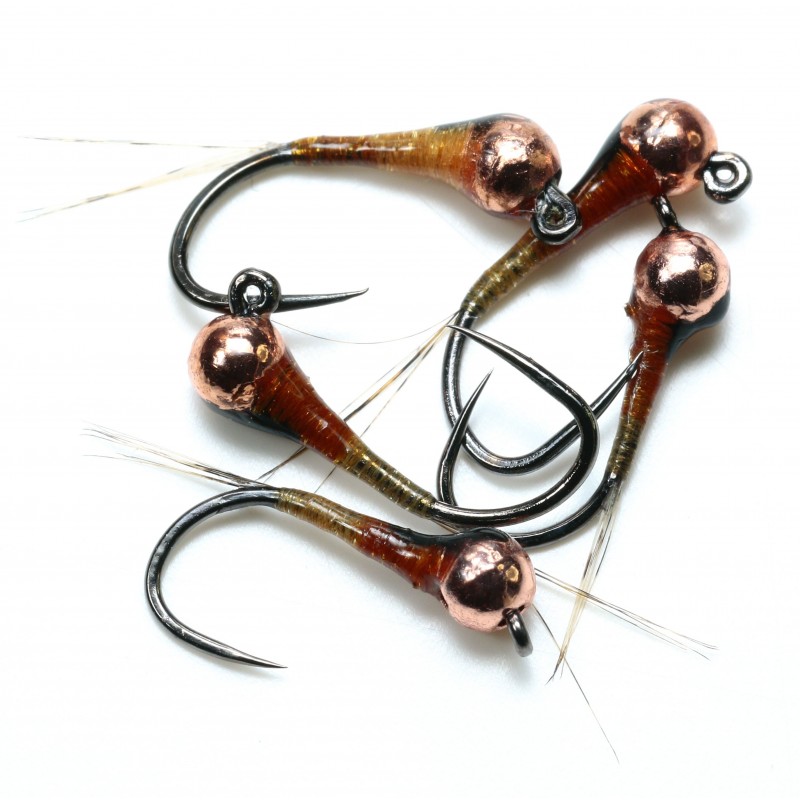 Ninfa para cualquier escenario, efectiva todo el año por su color cooper con destellos verdes, montada en tres tamaños y cabeza cobre.Efectividad contrastada!!! Cabeza: CobreAnzuelo: FC11BLNº 16, 14 y 12Bufanda: Naranja.Culo: No.Cuerpo: cooper con destellos verdes