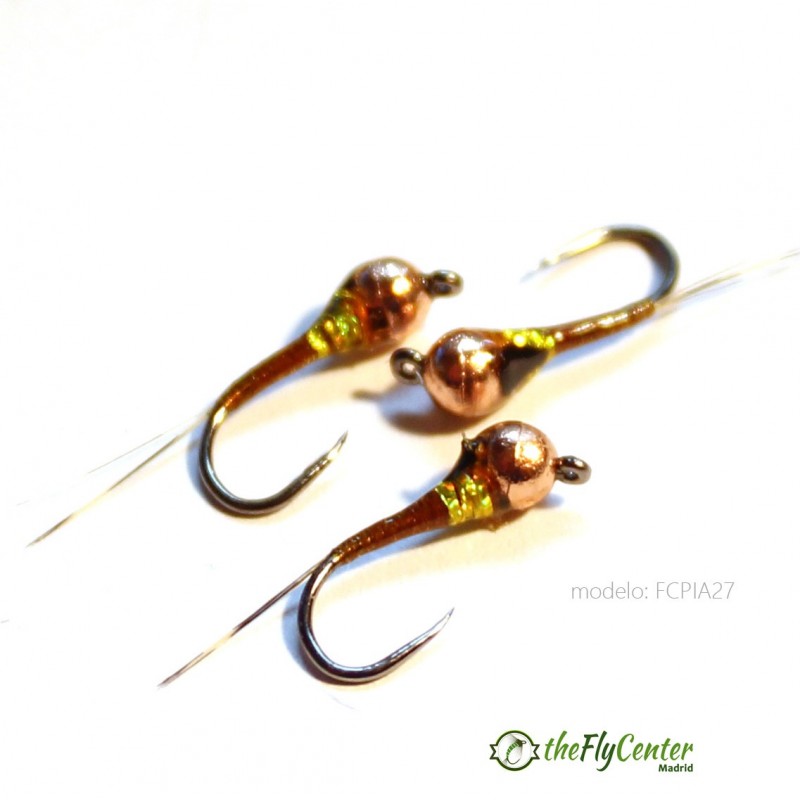 Ninfa Perdigón competición en bola tungsteno Slotted plus montados en exclusiva para the FlyCenter con los materiales mas efectivos del momento.Efectividad contrastada!!! Cabeza: Cobre Anzuelo: FC11BL Nº14 y 16Bufanda: No.Culo: No.Brinca: Ice PearlCuerpo: Floss Rust