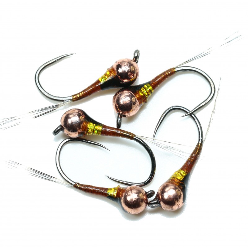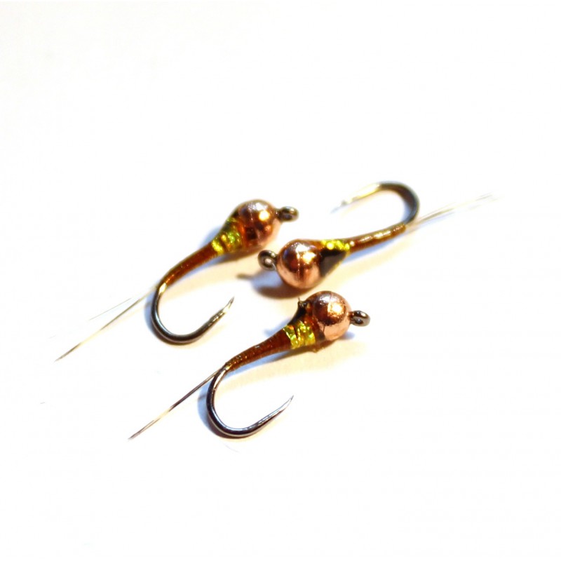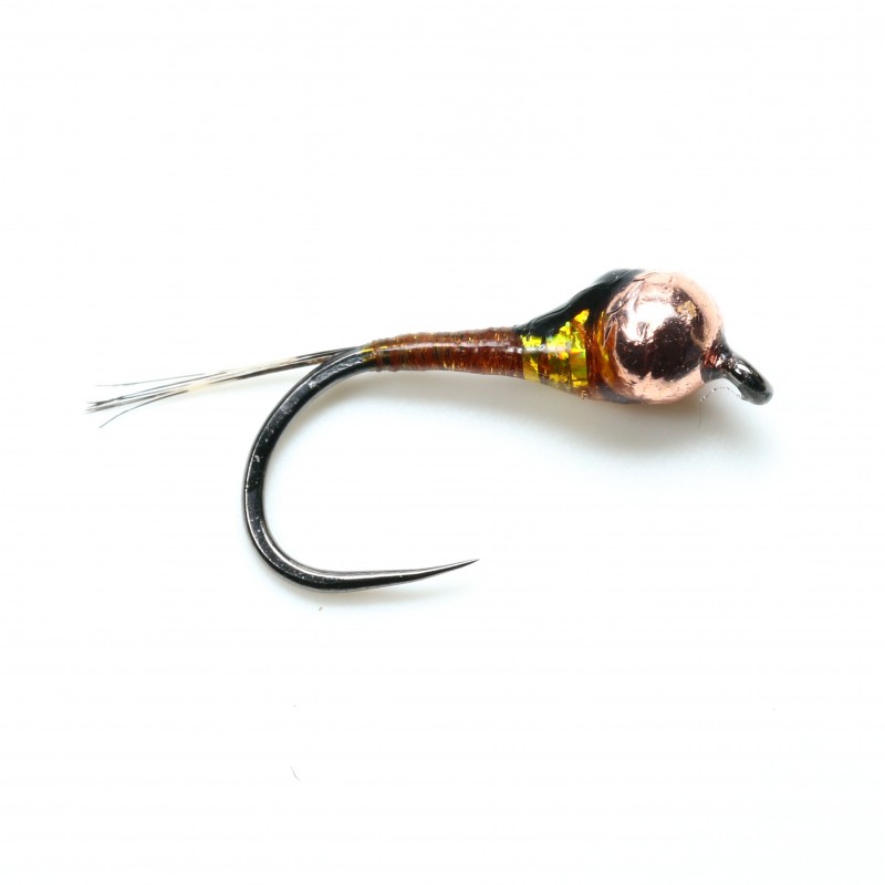 Ninfa imprescindible en tu caja de moscas, efectiva en cualquier escanario por su color y bola, montada en 2 tamaños.Efectividad contrastada!!! Cabeza: Cobre Anzuelo: Fc11BL Nº 14 y 12Bufanda: Holo Cobre.Culo: No.Cuerpo: Cooper