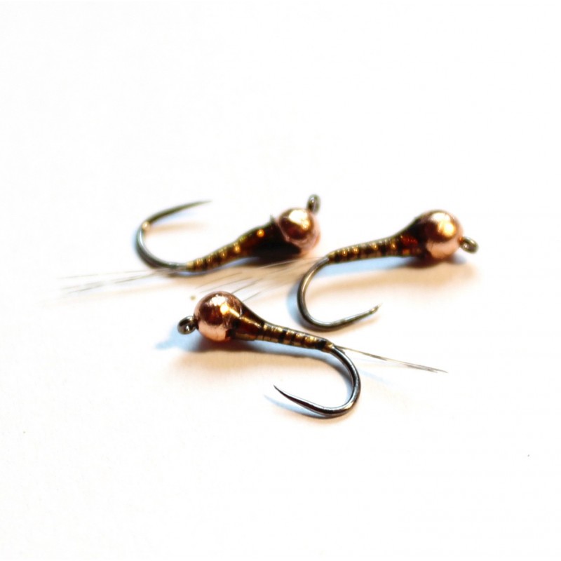 Ninfa para cualquier escenario, efectiva todo el año por su color cooper con destellos verdes, montada en tres tamaños y cabeza cobre.Efectividad contrastada!!! Cabeza: CobreAnzuelo: FC11BLNº 16, 14 y 12Bufanda: Naranja.Culo: No.Cuerpo: cooper con destellos verdes