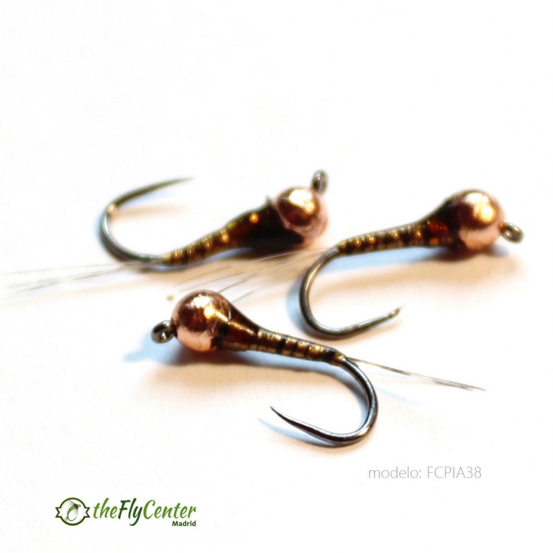 Ninfa Perdigón competición en bola tungsteno Slotted plus montados en exclusiva para the FlyCenter con los materiales mas efectivos del momento.Efectividad contrastada!!! Cabeza: Cobre Anzuelo: FC11BL Nº14 y 16Bufanda: No.Culo: No.Brinca: Ice PearlCuerpo: Floss Rust