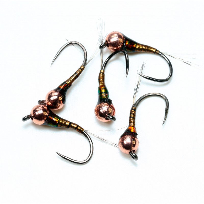 Ninfa imprescindible en tu caja de moscas, efectiva en cualquier escanario por su color y bola, montada en 2 tamaños.