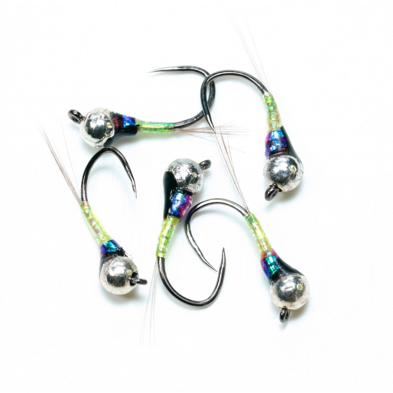 Ninfa muy efectiva para toda la temporada montada en 2 medidas y bola de plata, utilizada cuando el rio esta mas turbio.