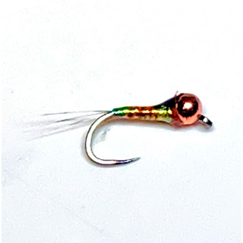 Todos hemos observado truchas tomando pequeños dípteros, tanto en aguas calmadas como puestas al final de las tablas, en esos momentos es imprescindible utilizar esta mosca. - Anzuelo FC10BL en 20- Seda negro- Butt de Faisán Dorado- Cuerpo Herl de Pavo Real- Brinca Pearl Braidback Golden Peacock- Indicador Glo Britte N4- Tórax Herl de Pavo Real- Hackle...