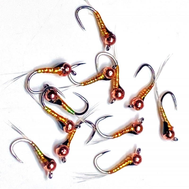 La imitacion de gammarus es una de las mejores opciones para pescar cerca de la vegetacion del río, su aspecto natural la hace muy efectiva. Van ligeramente plomados.
