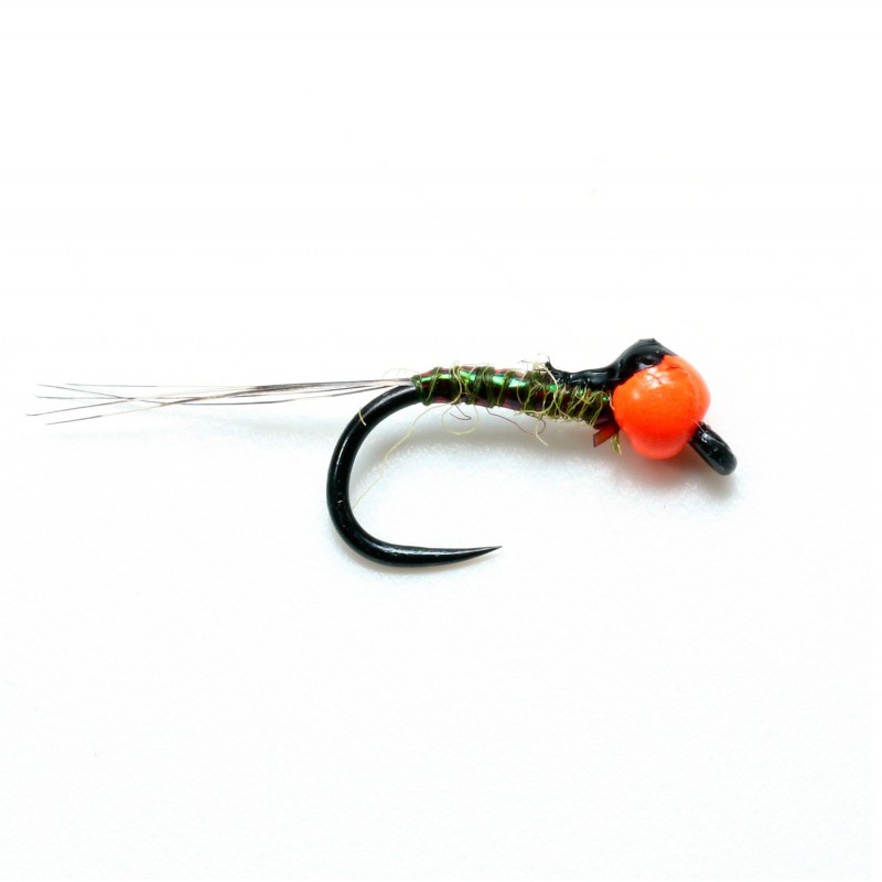 Una ninfa que nunca uede faltar en tu caja, la negrina pesca durante todo el año y da muchos peces cuando no sabemos que ninfa montar. Su cabeza negra, collar en iriscente y brinca plata la hace visible e irresistible. Montada con anzuelo Flycreek Tamaño. - Bola tungsteno plus negra de 3.0 mm.