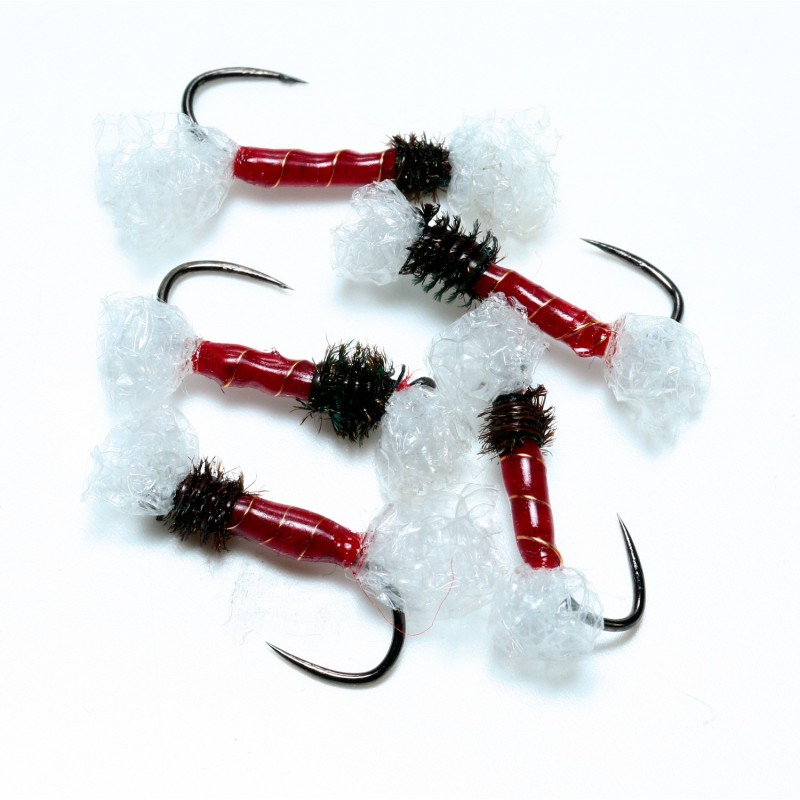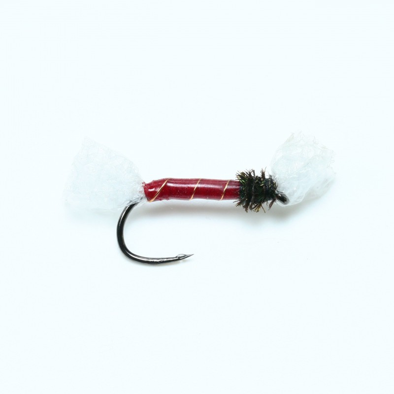 Esta Emergente de trico montada en latex translucido, junto a su saco alar y torax en CDC y dubbing la hace una de las ninfas mas realistas no pasando nunca desapercibidas. Cabeza: Roja en 3 mm.Anzuelo: FC24BL en 14.Bufanda: Liebre.Cuerpo: Latex
