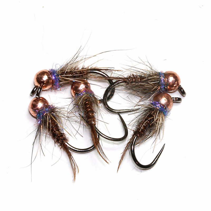 Una ninfa que nunca uede faltar en tu caja, la negrina pesca durante todo el año y da muchos peces cuando no sabemos que ninfa montar. Su cabeza negra, collar en iriscente y brinca plata la hace visible e irresistible. Montada con anzuelo Flycreek Tamaño. - Bola tungsteno plus negra de 3.0 mm.