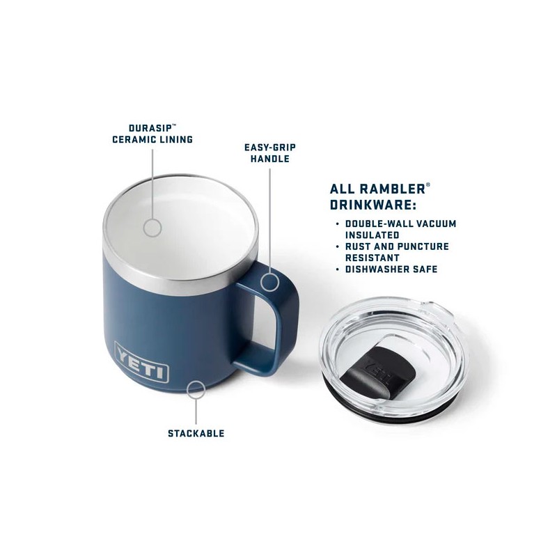 El vaso termo con asa tipo taza Rambler Travel es el unico vaso con tapa Water Resistant Stronghold. Podras meterla en la mochila y hacer una salida de pesca y poder beber sin derrames en cualquier momento.El culo es del tamaño del hueco de los coches para los ceniceros o botesCapacidad 591ml / 20 US fl ozPeso vacío 358gColore inoxidable y DuraCoatACero...