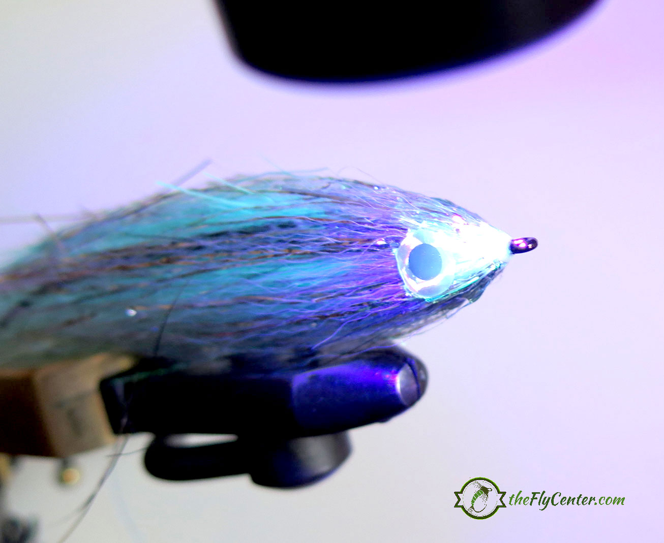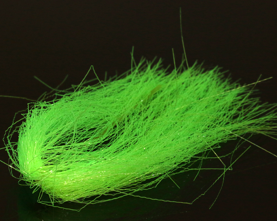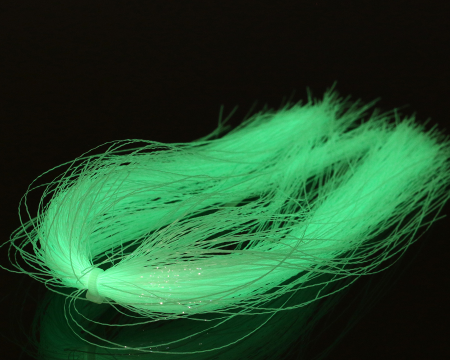 Os presentamos un montaje muy visible utilizando una maravilla de fibra como es el “glow” que carga luminosidad con los rayos UV, que en este montaje utilizo para aportar luz en el interior del montaje, añadiendo destellos de flash con el tinsel Blend Hair para brillos por el exterior del montaje.