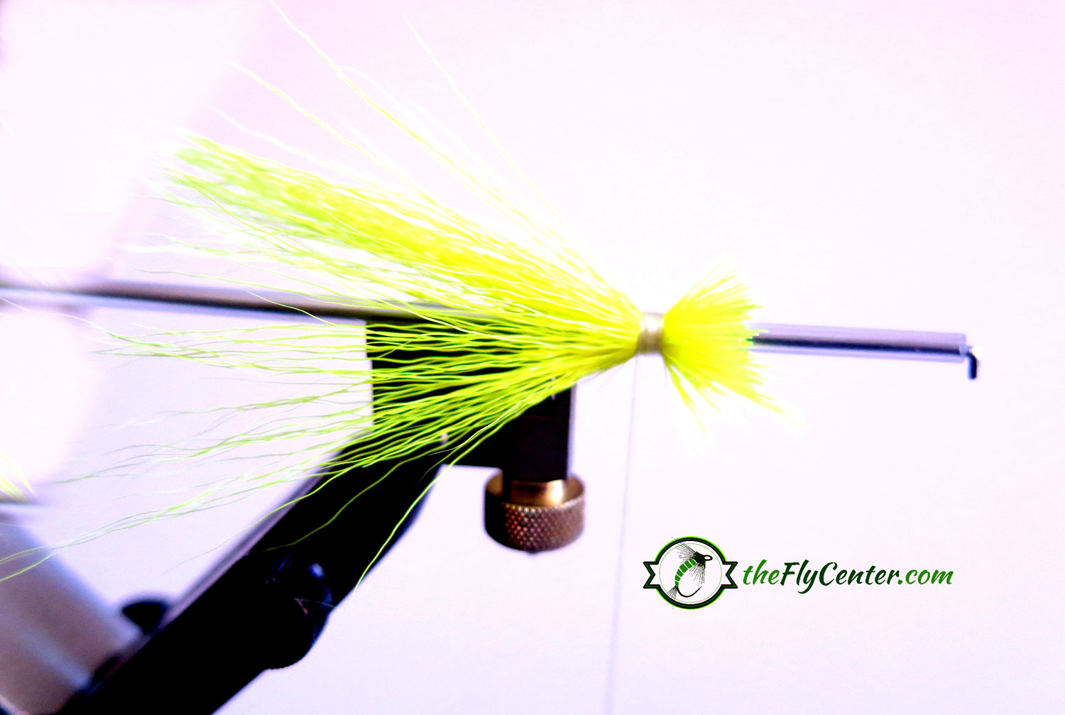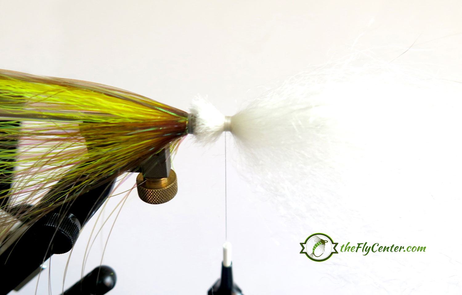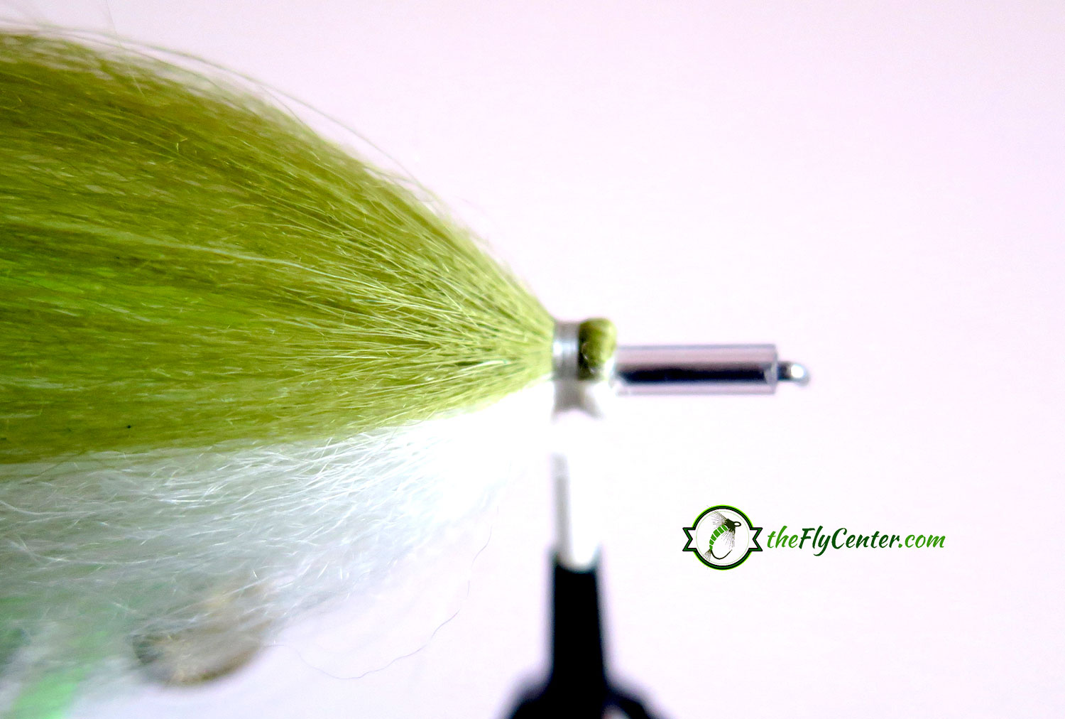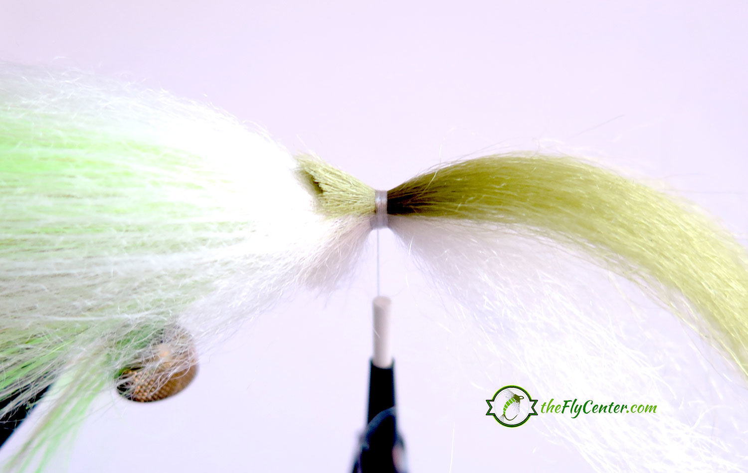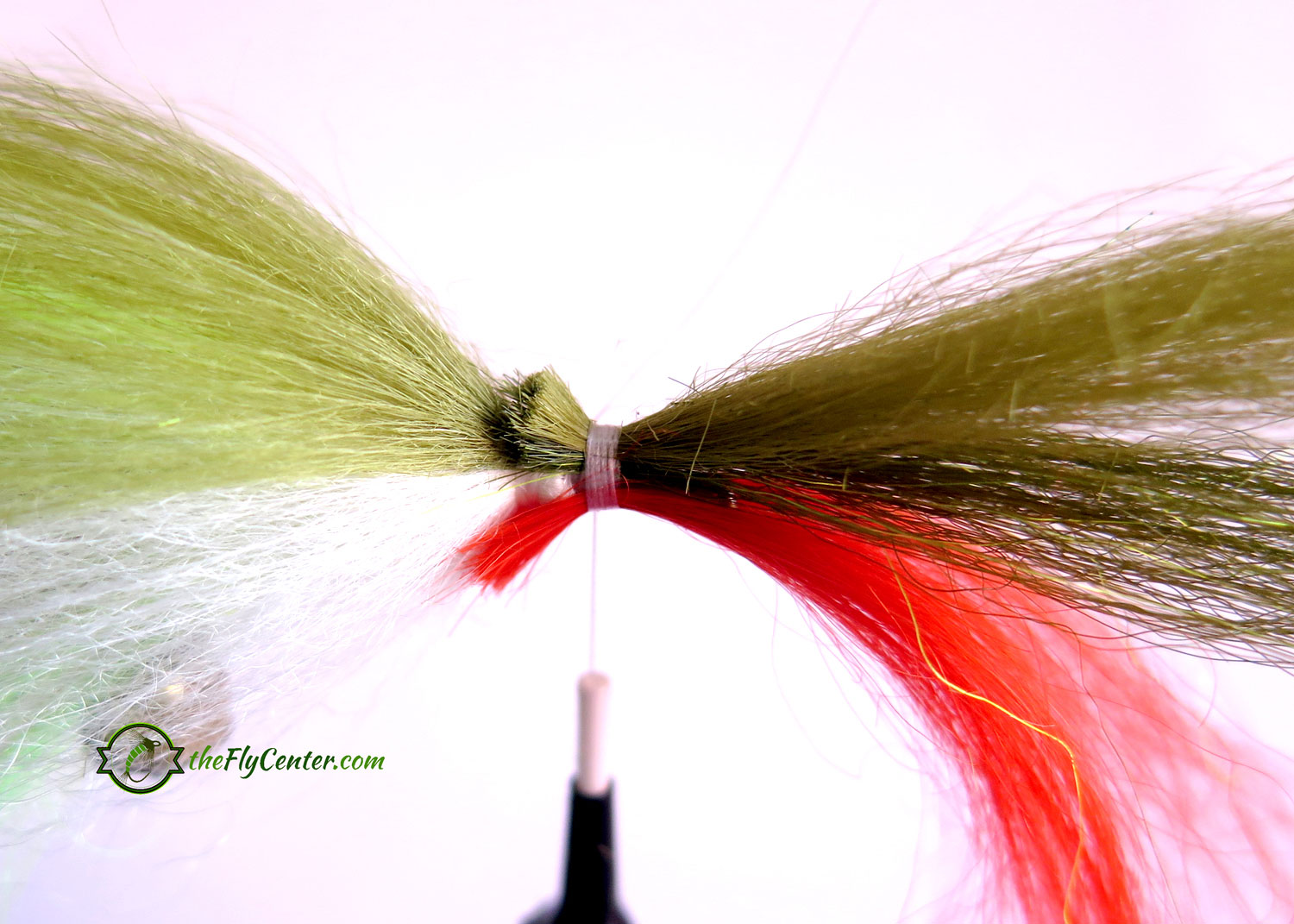 Se colocan las fibras de flash que daran la linea central del señuelo y se realiza el nudo final.