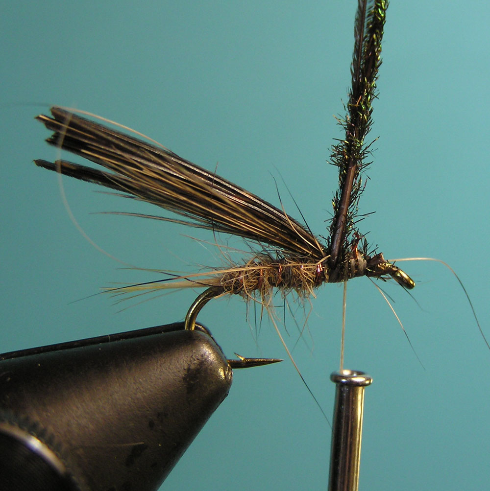 Comienza el truco. Atamos las plumas de faisán sobre el tórax de la ninfa. Observe con atención el largo de las puntas.