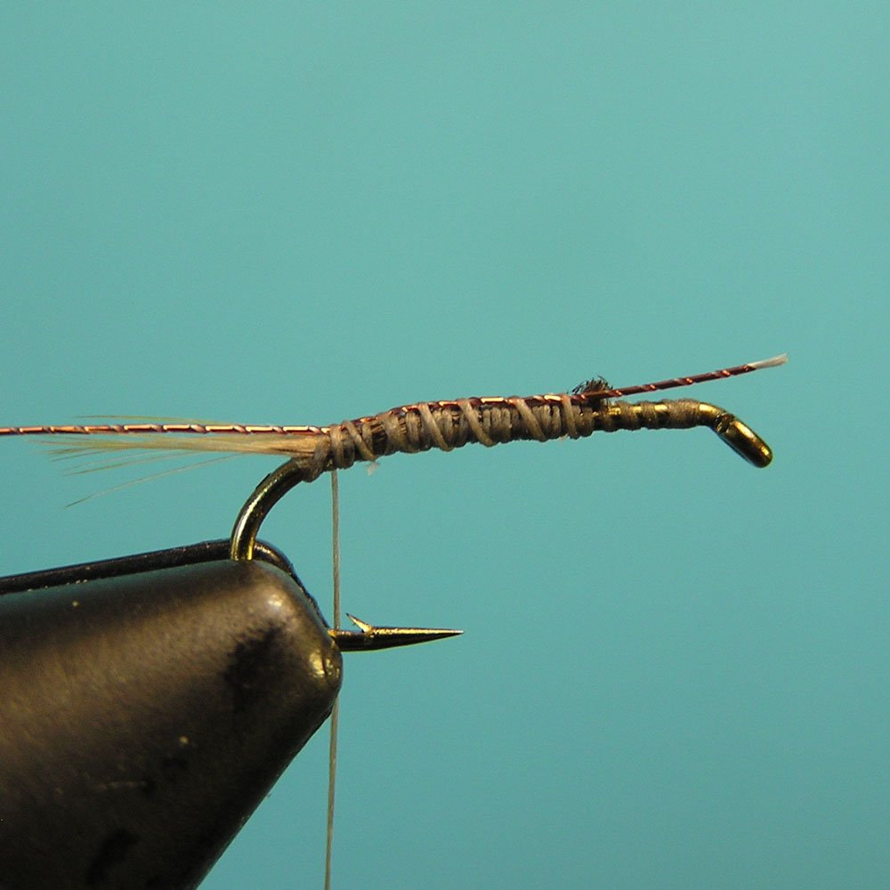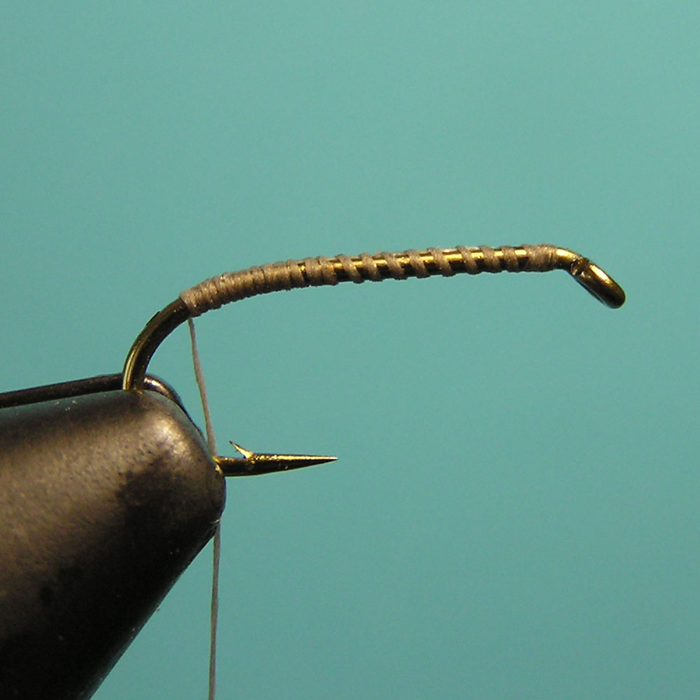 La brinca o segmentación esta realizada con cobre fino, pero puede usarse igualmente otros tinseles, o brincas o simplemente dejar el cuerpo libre.