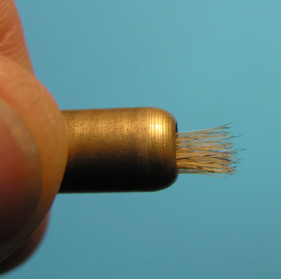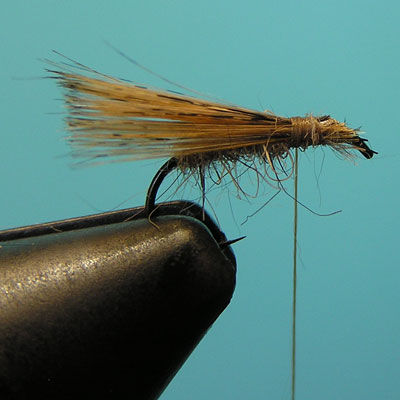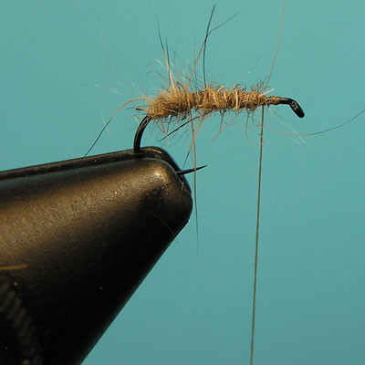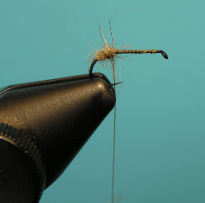 La cantidad de dubbing colocada sobre la seda es mínima. Como regla general use siempre la menor cantidad posible, tal vez tenga luego que añadir.