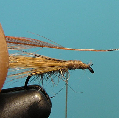 El hackle típico del modelo ha sido siempre el marrón o miel, pero puede realizarse con colores como grizzly o el ginger, o alguno de los barrados. Se monta igualmente en “parachute” para reforzar su estabilidad y usarse en aguas fuertes.