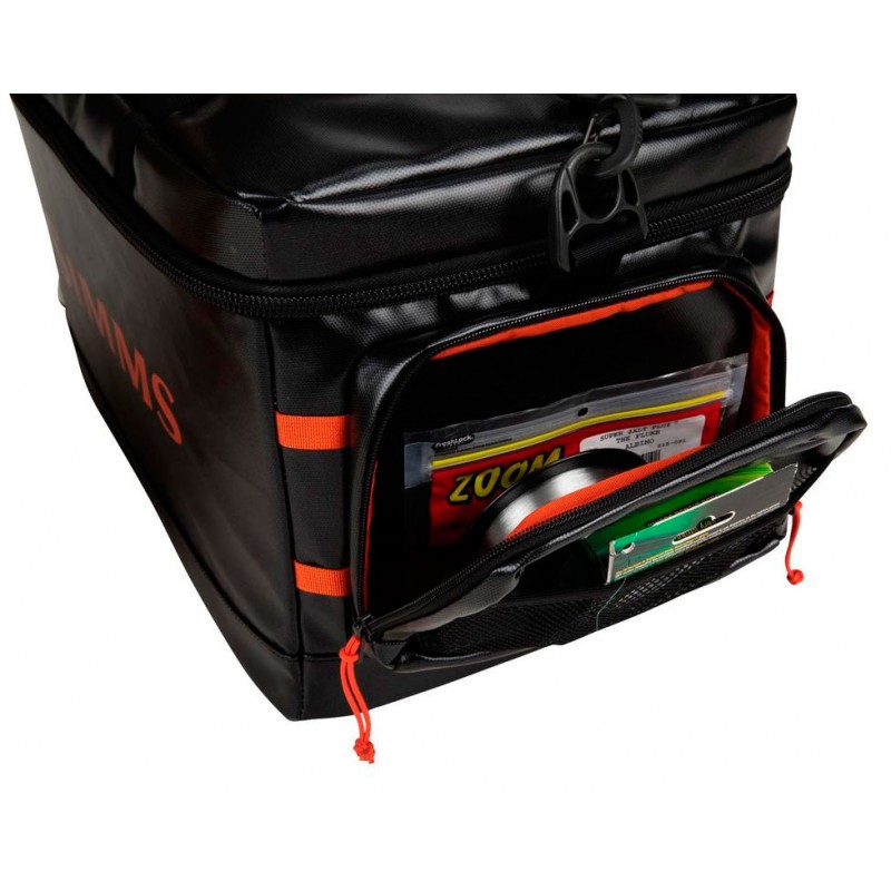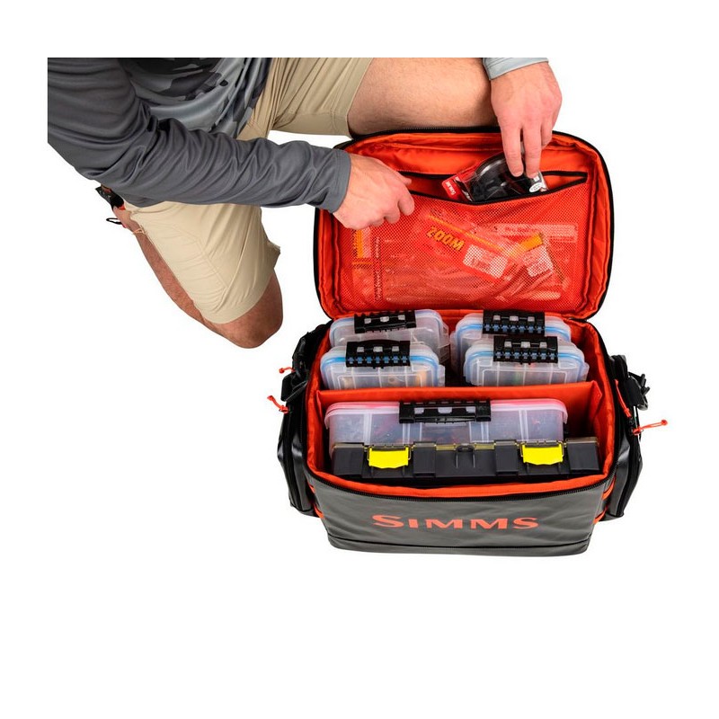 El sistema de organización exterior cuenta con bolsillos con cremallera para carretes y accesorios a ambos lados, además de un bolsillo adicional de malla elástica.