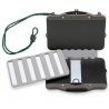 Caja de moscas CyF con sistema extra liviano: esta caja de mosca está equipado con dos cambiadores de espuma y ofrece una funcionalidad liviana notable. Pesa solo 49 g/1,73 oz (Large), 41 g/1,44 oz (medium) y 34 g/1,2 oz (small). Estos pesos son menos de la mitad de nuestro cajas estancas para moscas.
