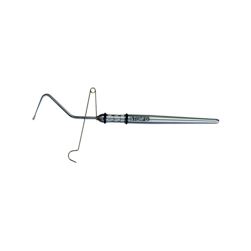 Punzon Stonfo 502 de punta retractil para poder utilizarlo cuando montamos nuestras moscas o llevar en accion de pesca y limpiar ojales de anzuelo u otras necesidades. Muy practico y majenable.