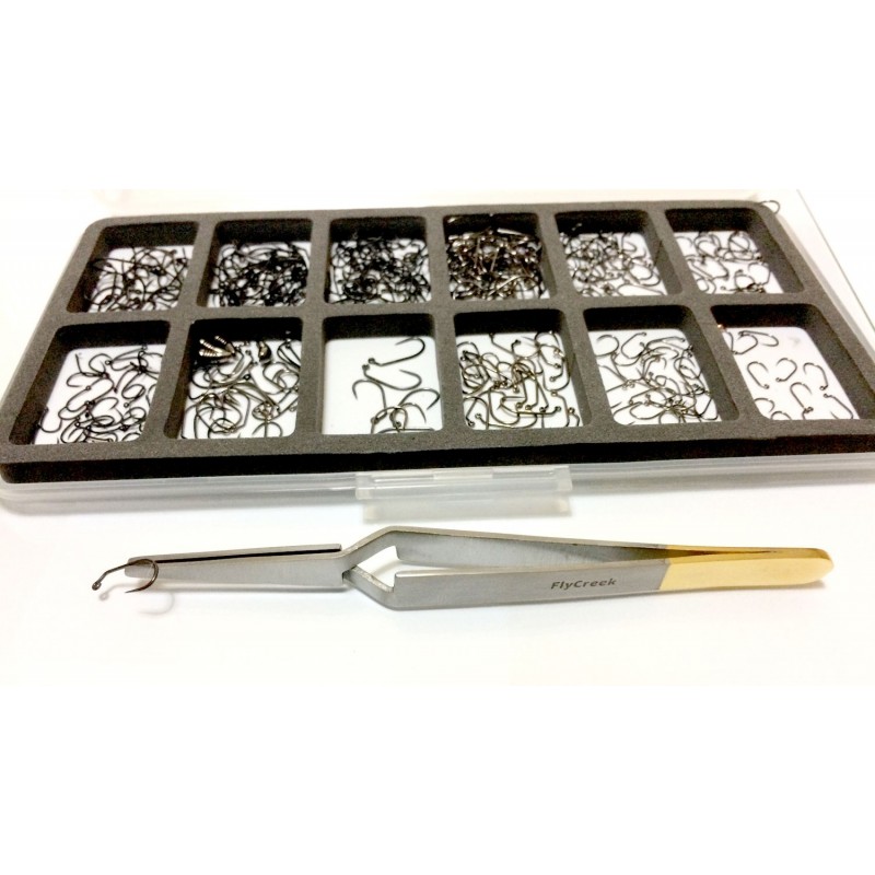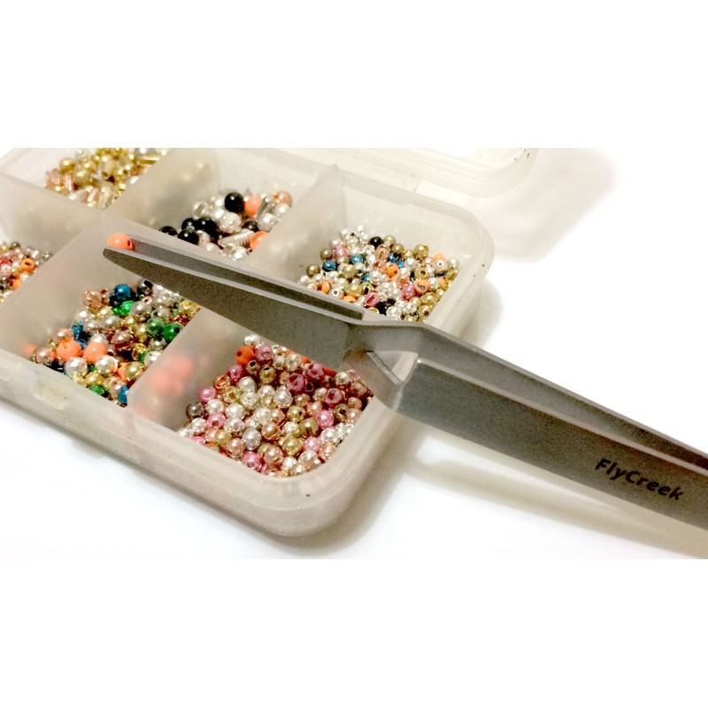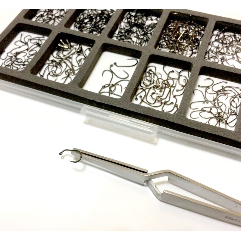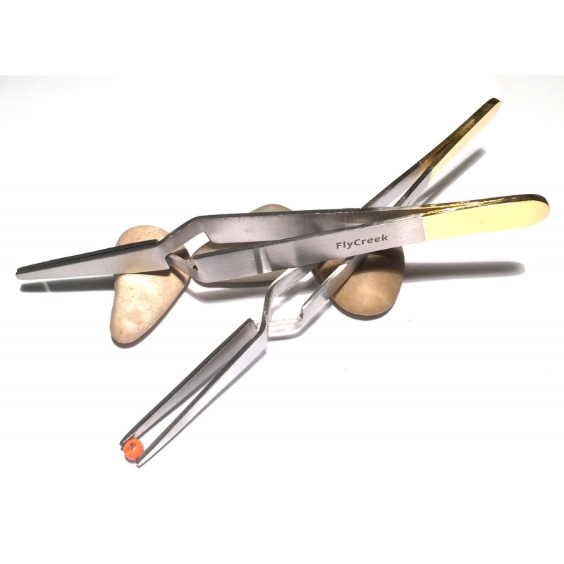 Pinza para anzuelos y bolas .... podras pasar los anzuelos comodamente por el ojal de las bolas, ademas de usar esta pinza para muchas mas cosas en tus montajes de moscas.