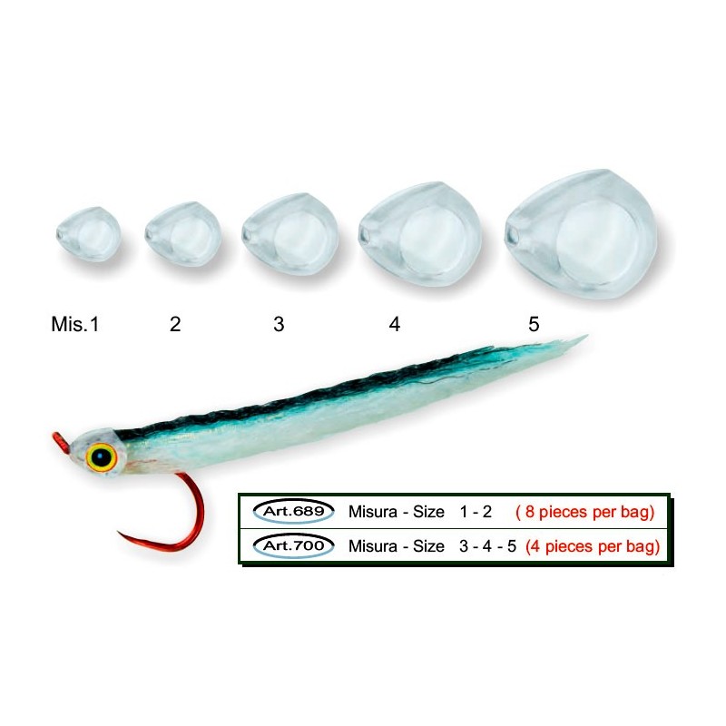 Hecho de material de plástico Blando transparente, muy ligeros y no afectan al realizar los lances ya que no meten peso a la artificial.