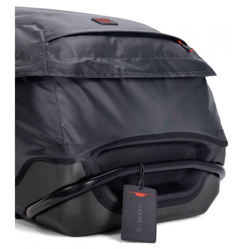 LA Bolsa Taco Bag de Simms mejorada para transportar botas y botas mojadas y embarradas.Fabricado con un tejido de nailon balístico de 600 denier recubierto de PU, los ingredientes incluyen un gran diseño circular que se traga dos pares de botas goteantes y sus compañeros de botas embarradas.
