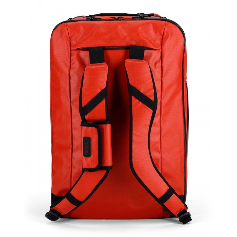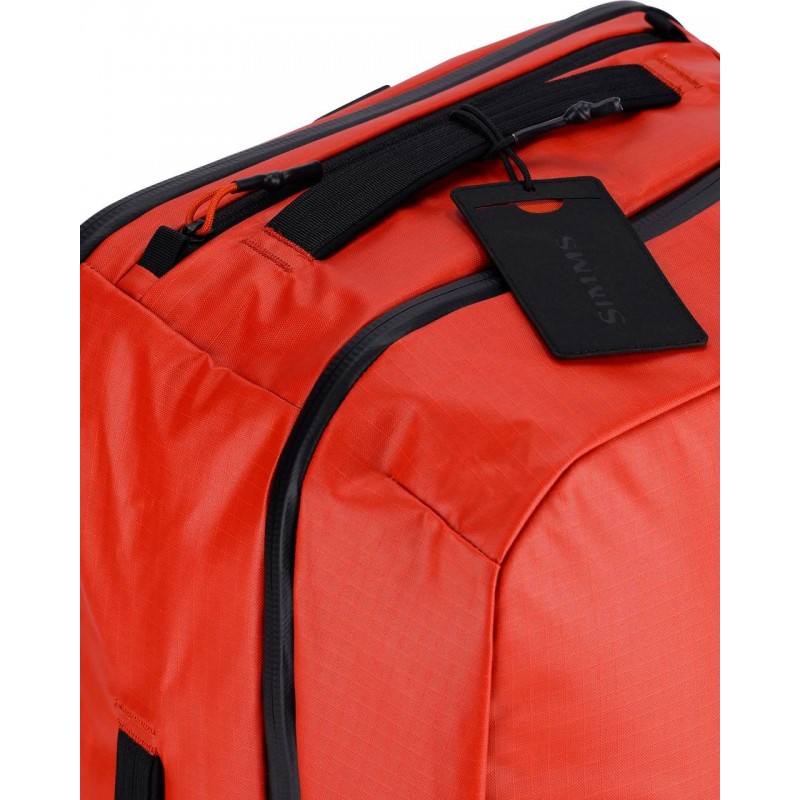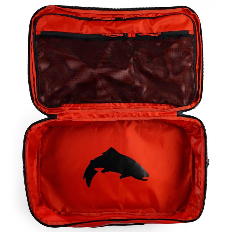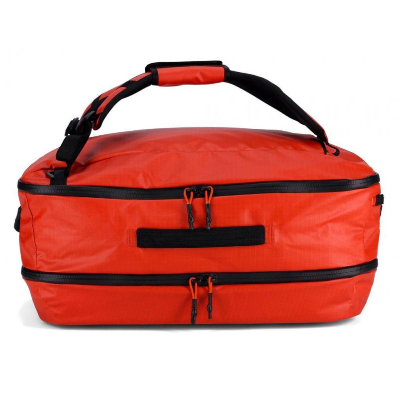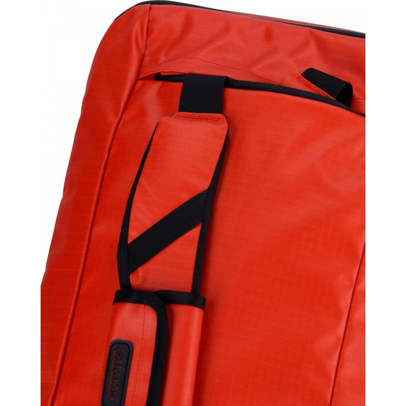 LA Bolsa Taco Bag de Simms mejorada para transportar botas y botas mojadas y embarradas.Fabricado con un tejido de nailon balístico de 600 denier recubierto de PU, los ingredientes incluyen un gran diseño circular que se traga dos pares de botas goteantes y sus compañeros de botas embarradas.