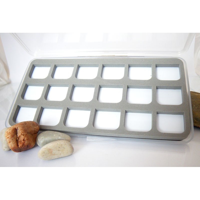 Mini Caja Plana con foam ranurado para ninfas y poder para llevar en pequeños bolsillos. Caja ideal para llevar tus 'titulares' separadas del resto de ninfas. Caja con el foam de mayor calidad que otras cajas similares en el mercado mas economicas. Dos modelos disponibles: Modelo Small : 77 ranuras - Medidas: 11x7.5x1.3cm. Modelo Medium : 120 ranuras...
