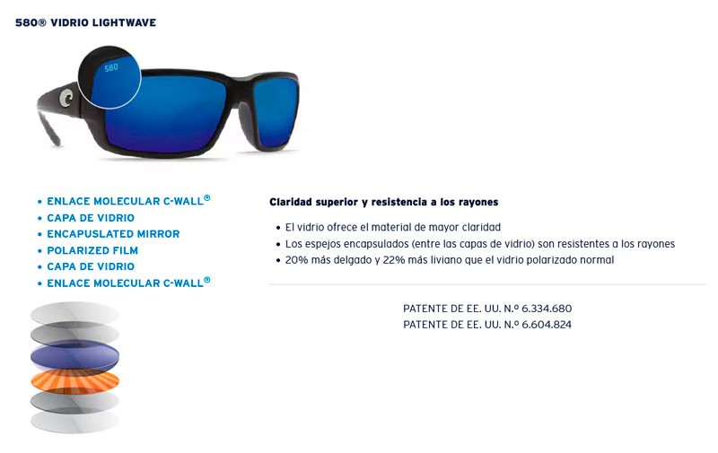 Sus Costa filtran por completo los rayos UV, lo que implica la mejor protección y control de la luz.
