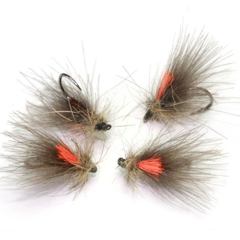 Tricoptero de conjunto, pesca muy placado, bueno tanto en aguas movidas como pescando las orillas de aguas lentas. - Anzuelo FC10BL en 16- Seda de montaje de color marrón- Cuerpo dubbing de Liebre- Tejadillo pelo de ciervo- Poste Glo Britte de color rojo- Falso Hackle en pelo de lomo de liebre natural