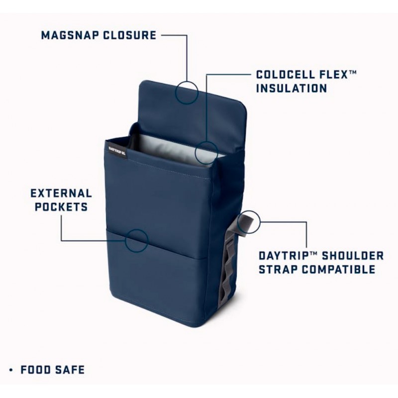Nevera Blanda Bolsa Daytrip una opcion para salidas de un dia que solo necesita un refresco o cerveza junto con un pequeño sandwich o fruta. Robusta y de alto rendiemiento mantine tu comida seca y fria. Facil de limpiarAislamiento ColdCell¨Tejido de alta Densidad DryHide¨ShellRejilla regulable con gancho de cierreCapacidad 2 latas con un sandwich o...